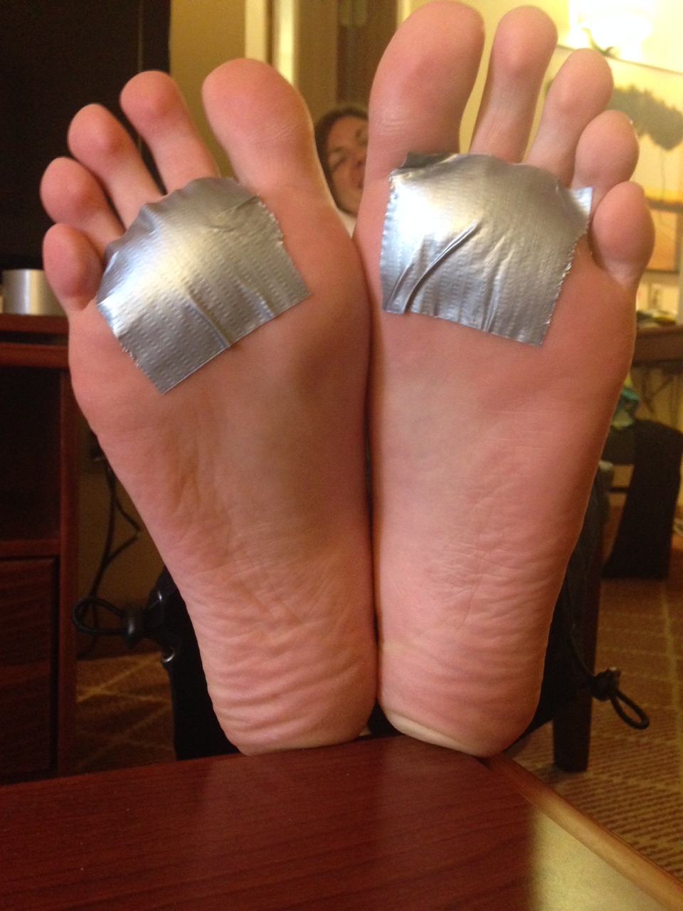 Who knew that duct tape was useful post-race? Lowi and I ended up with some killer blisters that just wouldn’t give up. We ended up having to tape them into submission. Sadly, or thankfully, this was the only thing that brought relief.