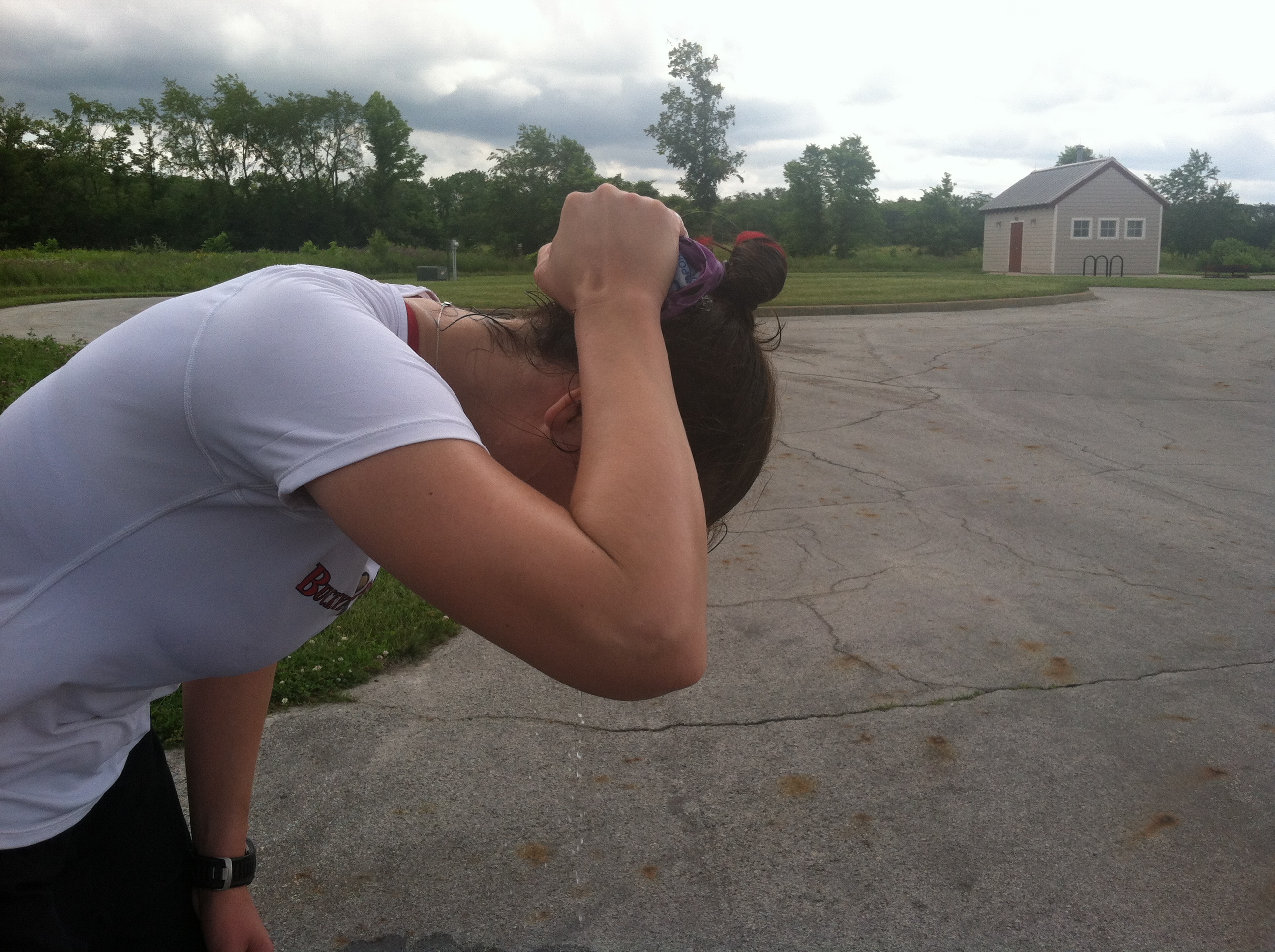 Saturday and Sunday this week were my first serious foray into heat training this year. We got out at about 11:30 am each day and ran 10 miles on both. This girl is on FIYAH! And not in the Alicia Keys kinda way. The pictures really do say it all.