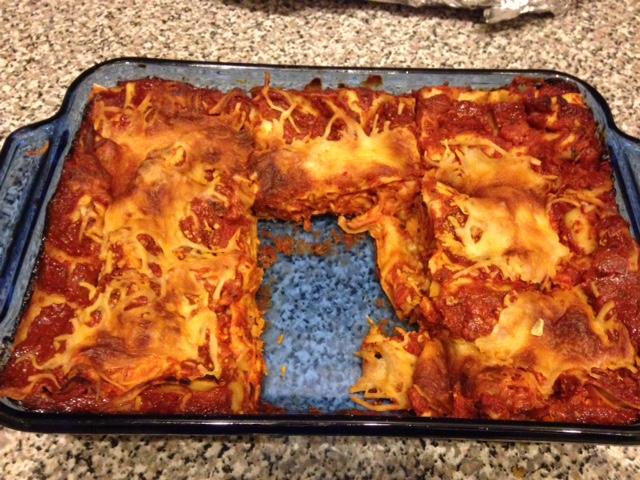 Since I was already making food for our Thanksgiving meal, John asked if I would make “lasagna” for him. Before you start thinking that I am quite the wife let’s get clear on what lasagna is in John’s world. It involves spaghetti sauce (jarred of course), noodles and mozzarella cheese. That’s it!