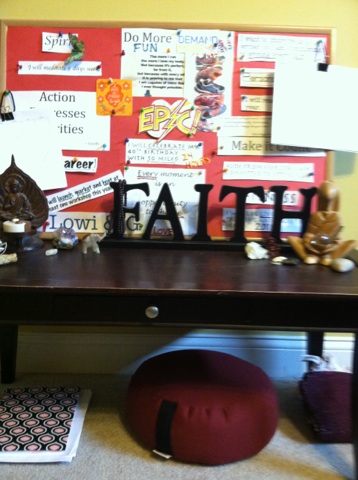 I can’t remember which holiday, birthday or event that I purchased G a meditation cushion, but it has been a hit. In fact, at this point in time I would like to accept any and all praise for ensuring that G is as mellow as she is. Okay, she is in no way mellow, but imagine what she would be like if I had NOT given her a meditation cushion? If you, or someone in your life, enjoys meditating or could use a hint that perhaps they should think about adding meditation to their life you might want to put this under their tree this year!