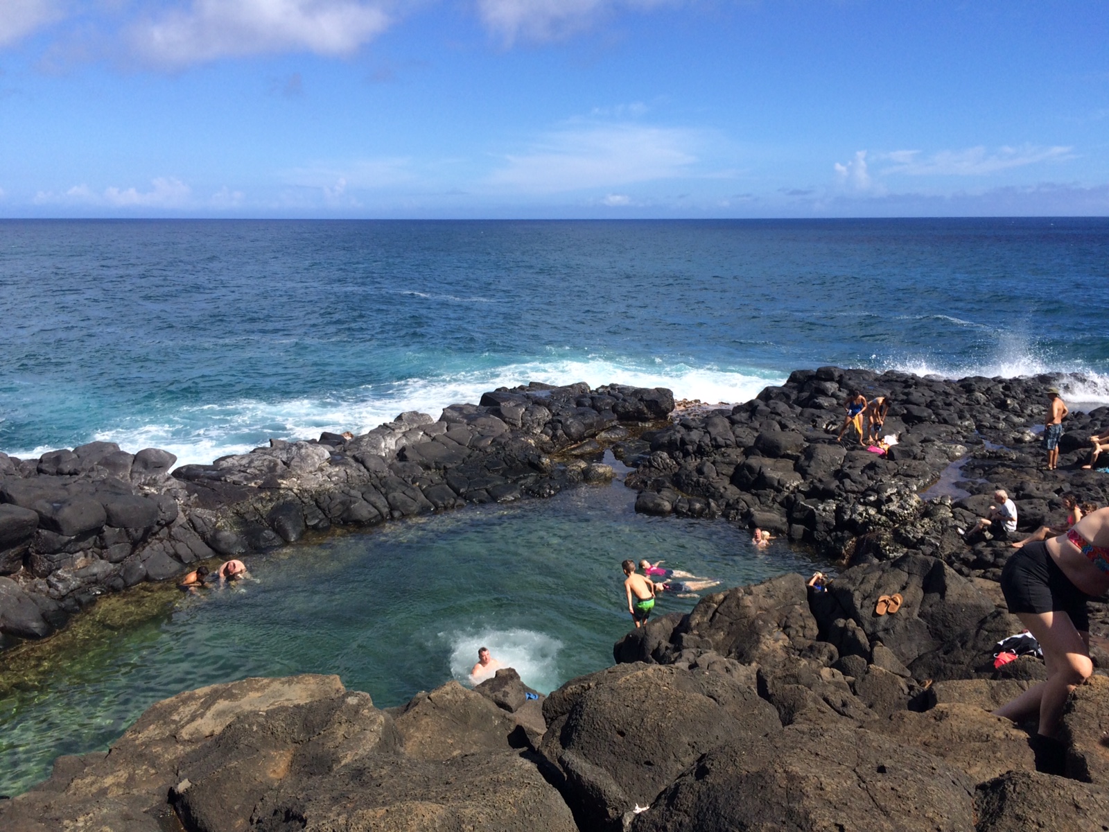 (L) While G has been hit by the crashing wave of humidity back in Ohio, I have been riding the waves of Hawaii. I know it’s not fair and I wish they were all here, but holy smokes it’s amazing. I truly cannot say I have been tortured in any way, shape or form this last week. I did go out for a run with my oldest daughter and it was definitely more humid than I am used to. We also managed to go down 783 stairs to the beach and quickly found an alternate route back home. While out on our little excursion we realized we were within walking distance (a mile) of Queen’s Bath so the next day we took the whole family. They were all very happy we chose to walk! This actually turned into quite a dirty excursion as we we tried to stay on our feet while the the trail threatened to throw us to the ground and spit us out a mile below! In the end it was totally worth the effort and going back up was much easier.