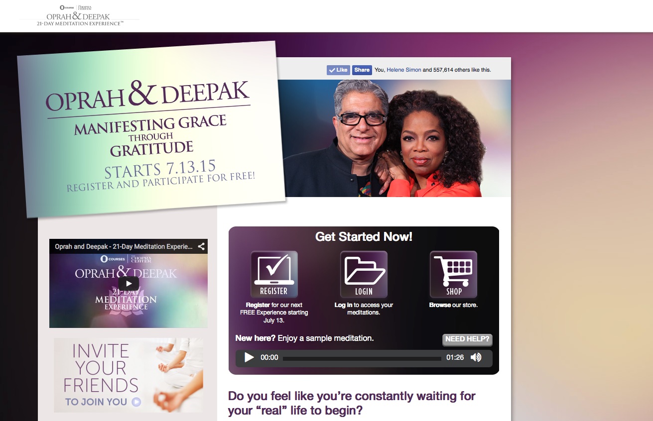 On Tuesday, I had a coaching client mention that the latest Deepak Chopra and Oprah Winfrey 21-day meditation challenge had started again. She’s a fan of the Oprah/Chopra meditation posse and mentioned that this series was Oprah & Deepak: Manifesting Grace Through Gratitude. As you know, we’re all about gratitude practices so that piqued my curiousity.