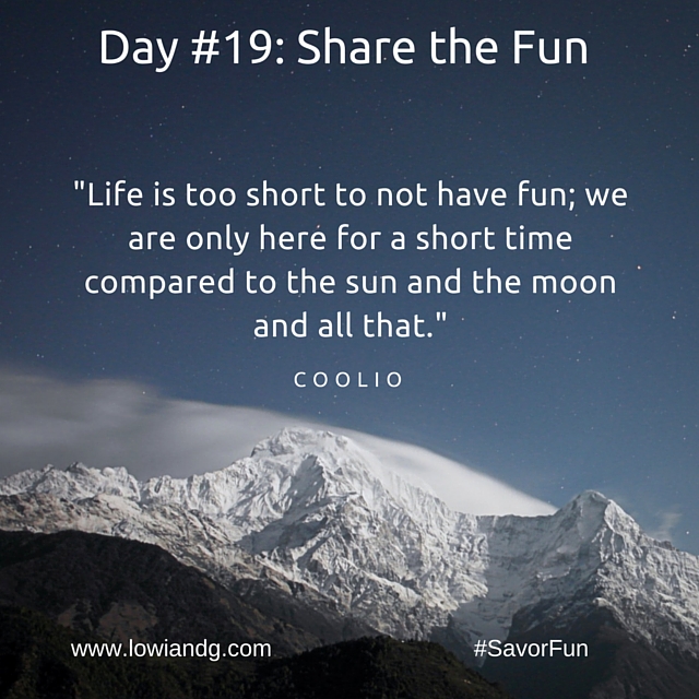 LGSavorOctober, Savor Fun Savor Fun: Day #19 Posted by G (of Lowi & G) on October 19, 2015 Click here for more on Sharing the Fun! Sunshine & Sarcasm, Lowi & G Share this:More Click to email a link to a friend (Opens in new window) Email Click to print (Opens in new window) Print TweetShare on TumblrLike Loading... Related