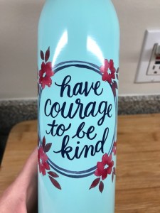 As I drove down her street toward my own house I glanced down at a new water bottle sitting in the drink holder. It says, “Have Courage to Be Kind.” I don’t really think what I did was courageous but it was kind.