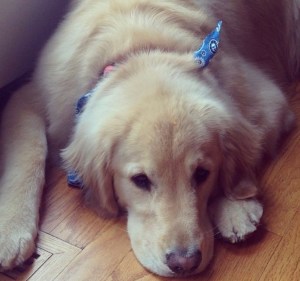 Our sister, Lisa, told me about using your pumpkin as a gratitude reminder by writing something you are grateful for on it each day. I haven’t managed to do it every day even though it is on my desk and I look at it all the time. But over the weekend we were sitting at the emergency vet waiting to hear what was going on with our wise old feline, Basil and there was an 8-month old yellow lab bounding around the waiting room, even though we’d already overheard he had eaten a plastic toy.
