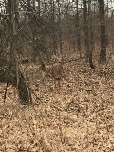 In the last few weeks, the weather has gotten much better, which means that I see other living souls while I am out. There are more humans walking their dogs, more squirrels, birds, rabbits and deer. I have had the great luck to see some firsts in the last couple of weeks.
