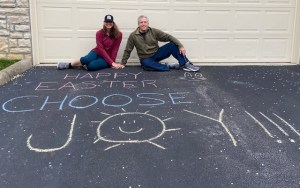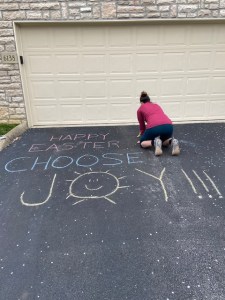 As luck would have it I have been pondering sidewalk chalk because… well, do you need a reason? And my husband was fortuitously gifted with some by default on Saturday and I was overjoyed (yep, couldn’t help it). And Sunday we used our driveway as a billboard to the world and offered: