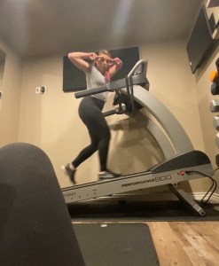 Reese did a video call with G and Swaggy J as proof that it was happening. Needless to say, they were stoked to have bullied, I mean, motivated us to do the challenge. I have to say, Sydney looked a little sweaty and tired after roughly 20 minutes on the treadmill. Her husband, Jake, quickly followed suit and crushed everyone’s times. While he did make it look easier, I could tell he was struggling a bit. I admit, I was still thinking that it couldn’t be as difficult as it looked. I don’t mean to sound like I thought they were a bunch of sissies or anything, It’s just my mind was struggling with the fact that it was taking these very fit people almost 20 minutes to complete one mile. Little did I know it could take way longer…