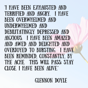 Being alive, being on this earth, is being in the “ache.” Being alive is feeling all of it; the good, the bad, the frustration, the joy, the overwhelm of all of it. To be alive is heartache and happiness and it’s okay to say in the midst of everything, that life is not going the way you want right now. Yes, this too will pass, but in the mean time, it’s okay to not be okay.
