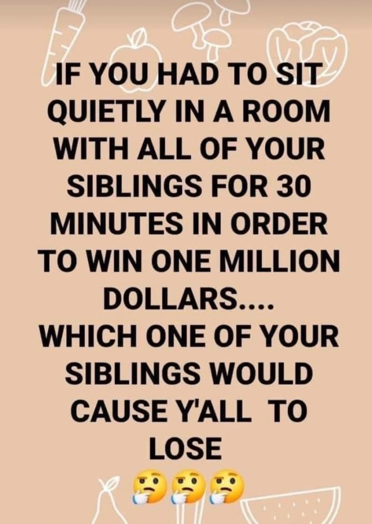 We all immediately replied that we could do it. Ten seconds later, we asked if we had to split the million dollars or if each of us got a cool million for ourselves.