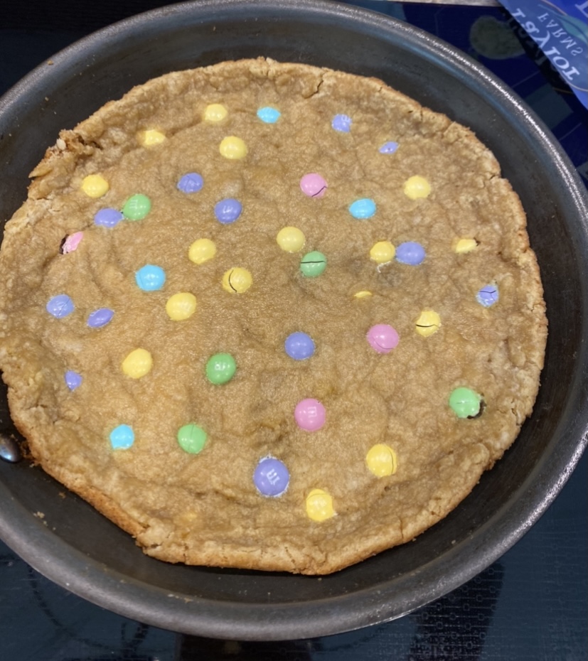 Meanwhile, my girlfriend and I ordered some peel and stick wallpaper for our powder rooms, not knowing how it would work. While I waited for that to be delivered I started watching Nadiya’s Time to Eat on Netflix. I had decided I needed a break from house projects. A few episodes in, though, she made a skillet cookie and I became obsessed with making it. Cookies are my thing. So, when my daughter came home from college for the weekend we decided to give it a try. We converted all the measurements and got busy making the skillet cookie. As soon as I saw the dough taking shape I knew it wasn’t going to be good. It was too much like a batter and not enough like cookie dough. We pressed on though, because we aren’t quitters. The bottom burned and the top didn’t cook. We could not salvage it.