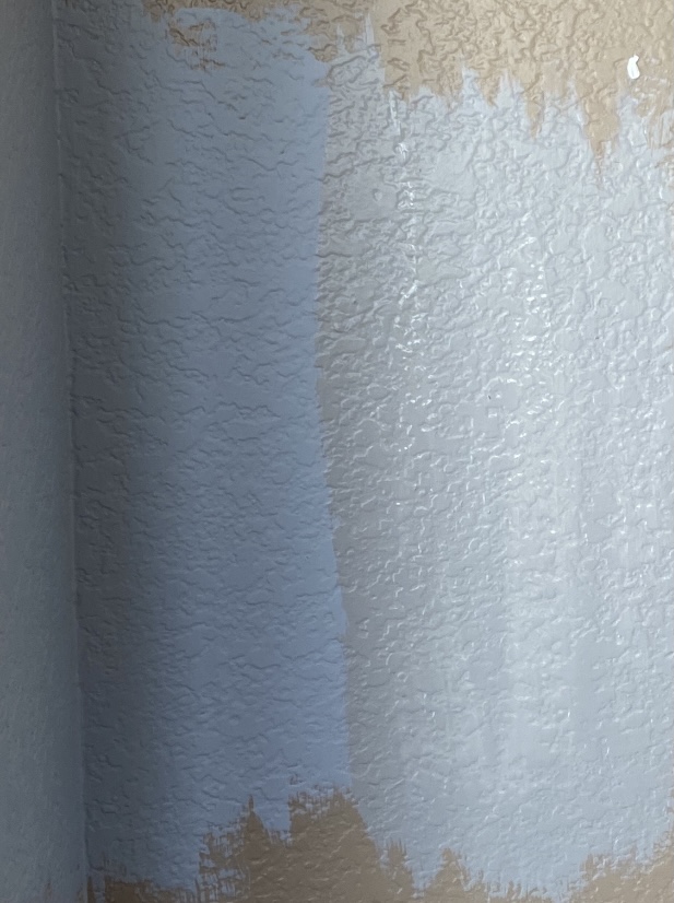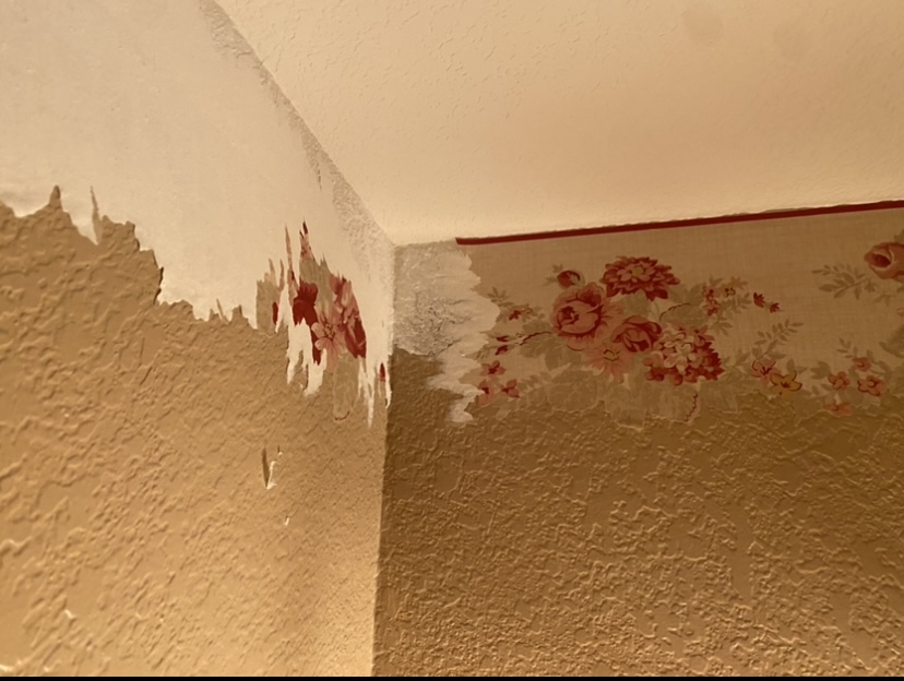 Since my girlfriend had just told me she was going to paint her powder room I told him I was going to use it to freshen up our guest bathroom which seemed to appease him, but honestly baby blue in that small room with cherry cabinets had me worried. I even added that I was going to remove the wallpaper border from 20 years ago, paint and then wallpaper one accent wall with something fun. All this because I wasn’t patient enough to purchase a sample first.