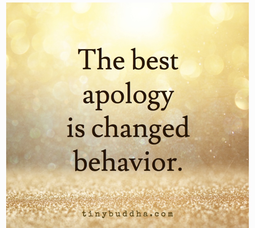There is a saying that the best apology is changed behavior. I think there is likely quite a bit of truth in there, while a genuine apology is also pretty darn good, too.