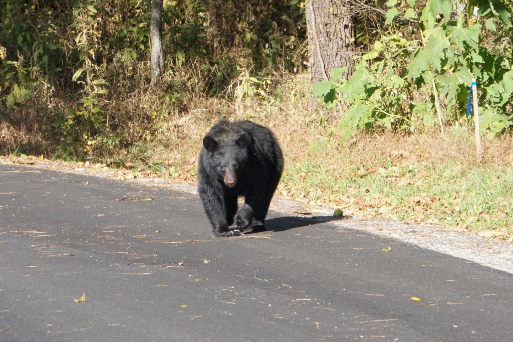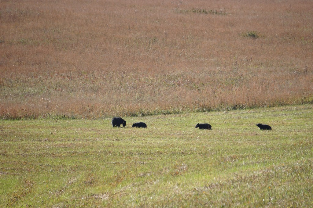 Me either, until Monday morning. John and I headed to Cades Cove in the Smoky Mountains in hopes of catching a glimpse of one of the black bears that call that area home. This is an 11-mile paved loop that you can drive, bike, or walk through during park hours.