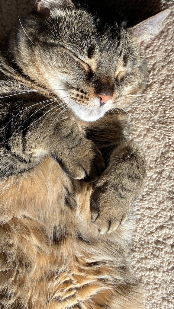 If you need an example, I have some to share. Wednesday morning, I went out for a walk, and as the sun was rising, the sky was ablaze with pinks and reds, and the color made the clouds shimmer. I stopped, took photos, and had a few moments of awe. A microjoy, if you will. Earlier this week, I woke to my cat nudging my hand in the middle of the night because she required some attention. I gave her head a little rub, and she started to purr. Yep, you guessed it, microjoy!