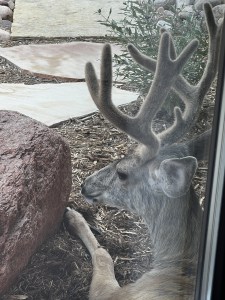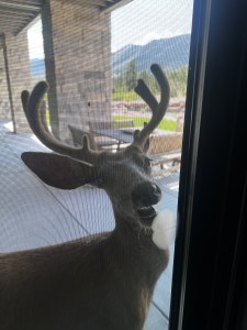 In June, though, a deer started regularly visiting and just like before, he started laying behind the garage. Soon, I found him at my window curiously looking inside. If I approached he would slowly walk to the glass slider as if I were going to let him in for a little snack.